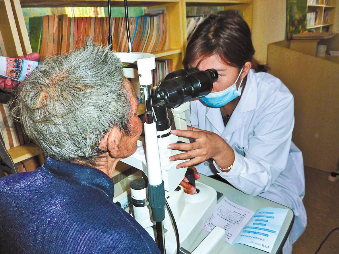 当天上午8时30分,医生就摆好了桌椅板凳、视力检测仪、眼科显微镜等设备。得知有免费义诊筛查活动,各居民小组的眼疾患者也早早地来到义诊现场。医生们迅速按照信息登记、视力检测、眼底检查等程序,依次为大家进行筛查,还介绍了眼睛保健常识,解答患者疑问。